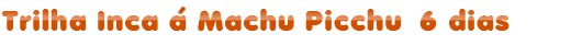 Esta rota é para aqueles que gostam da idéia de aventura em um LUGAR SAGRADO PARA OS INCAS. É uma experiência totalmente diferente, percorrer os caminhos que foram feitos pelos incas para chegar à CIDADE PERDIDA DOS INCAS DE MACHU PICCHU, é uma das aventuras mais exóticas. No TRILHA DE PEDRA, encontraremos as mais majestosas CONSTRUÇOES DE PEDRA onde se pode sentir a força de uma raça que dominava seu território como nenhuma outra o fez, criando uma trilha a 4200 mts e outra a 3900 mts. Estes homens foram muito engenhosos para levar esta enorme quantidade de pedras para fazer um grande caminho, ainda em nosso século admirado pelo mundo, e visitada por aqueles amantes do que realmente é fantástico. Hoje já se passaram muitos séculos, e os portadores (carregadores) sao os mesmos descendentes dos Incas, conservando ainda suas vestimentas típicas e costumes. BEM-VINDO AO TRILHA INCA NO PERU! |